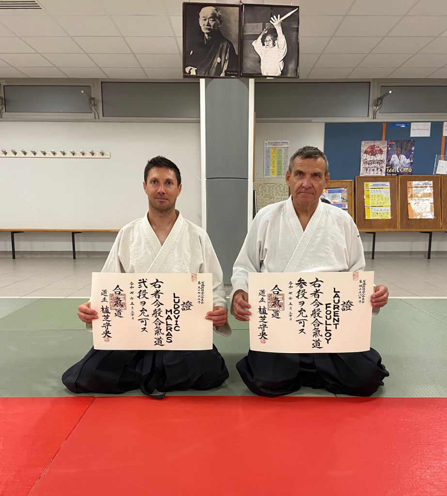 Félicitations à Ludovic et Laurent pour leur nidan (2e dan) et sandan (3e dan) Aïkikaï passés en mars 2025.