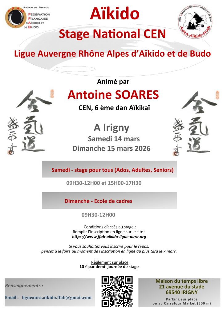 Stage CEN pour tous et école de cadres, A. Soares, 14 et 15 mars 2026, Irigny