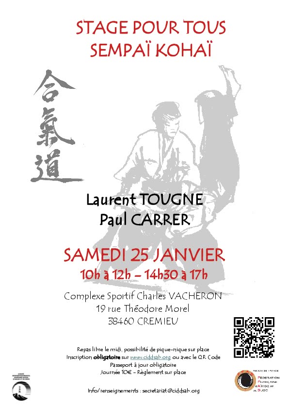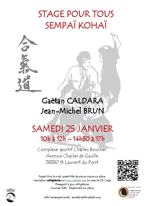 Stages pour tous sempaï kohaï, 25 janvier 2025, Saint-Laurent-du-Pont et Crémieu, 26 janvier 2025, Belley